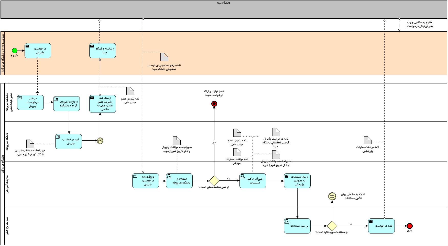 ارسال نامه درخواست پذيرش فرصت تحقيقاتي از دانشگاه مبدا به معاونت آموزشي دانشگاه هرمزگان