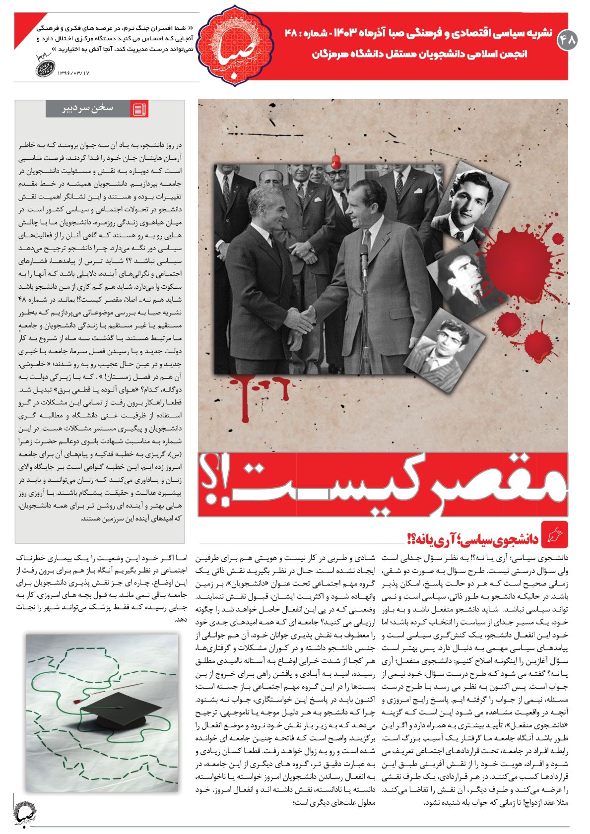 انتشار چهل و هشتمین شماره از نشریه سیاسی، اقتصادی و فرهنگی صبا