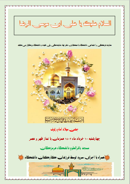 فرا رسیدن ولادت هشتمین اختر تابناک آسمان امامت و ولایت؛ ولی نعمتمان آقا امام رضا علیه السلام بر همگی مبارک باد