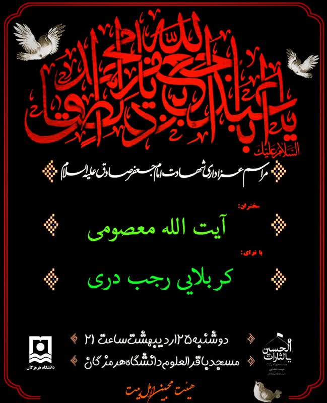 بسیج دانشجویی دانشگاه هرمزگان فرارسیدن شهادت امام صادق علیه السلام تسلیت عرض می‌کند.