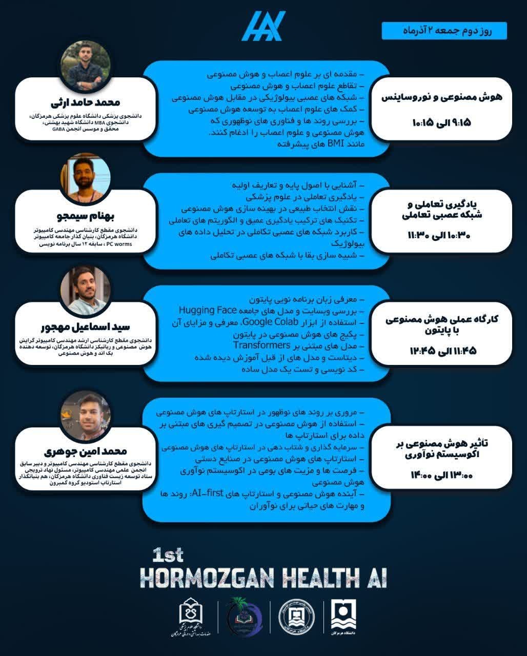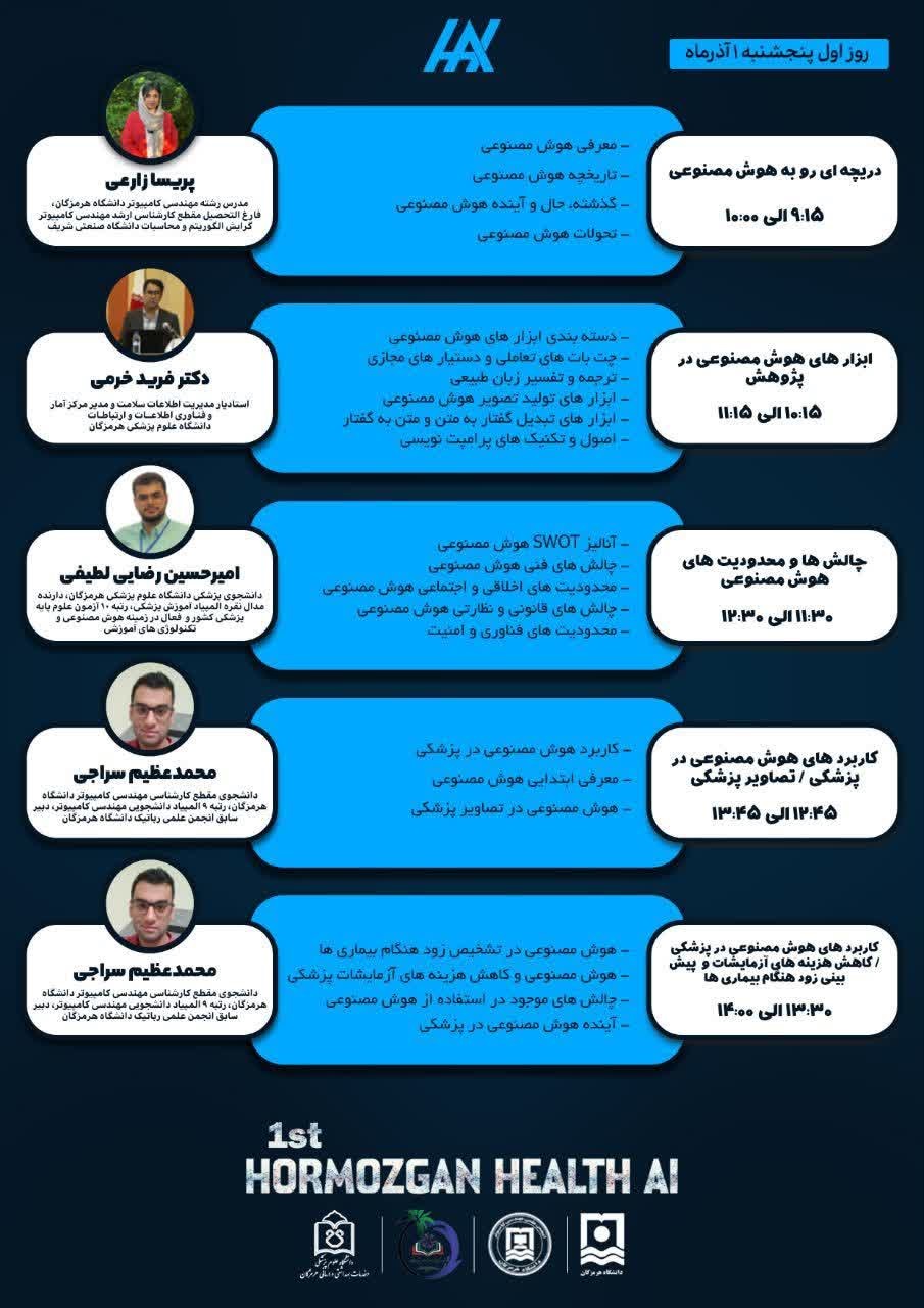 نخستین همکاری دانشگاه علوم پزشکی بندرعباس و دانشگاه هرمزگان در قالب رویداد دانشجویی هوش مصنوعی در علوم پزشکی برگزار می گردد.