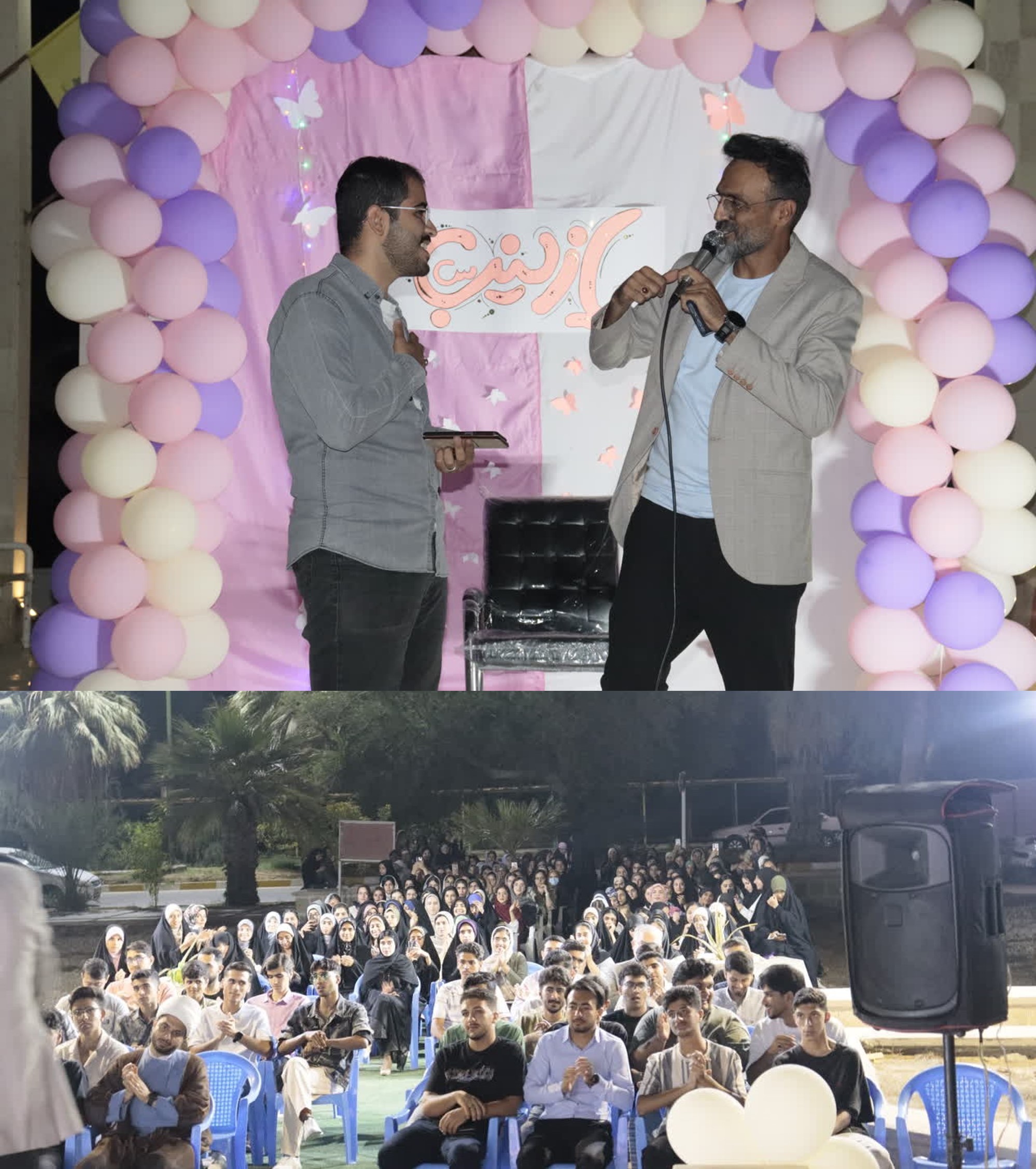 جشن ولادت حضرت زینب (س) و گرامیداشت روز پرستار با حضور پرشور دانشجویان در گلزار شهدای گمنام دانشگاه هرمزگان برگزار شد. این مراسم با سخنرانی حجت‌الاسلام سید ساجدی، مولودی‌خوانی، نورافشانی و مسابقه پانتومیم در فضایی شاد و معنوی همراه بود.