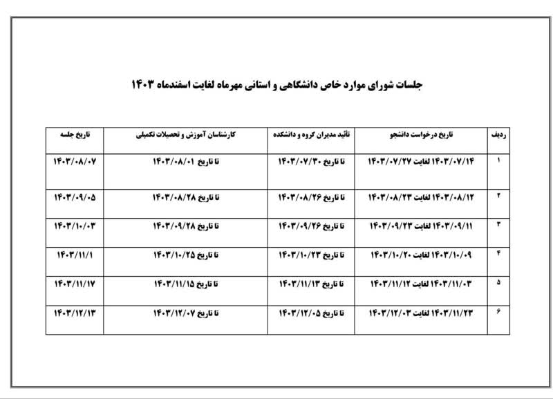 جلسات شورای موارد خاص دانشگاهی و استانی بهمن و اسفندماه 1403
