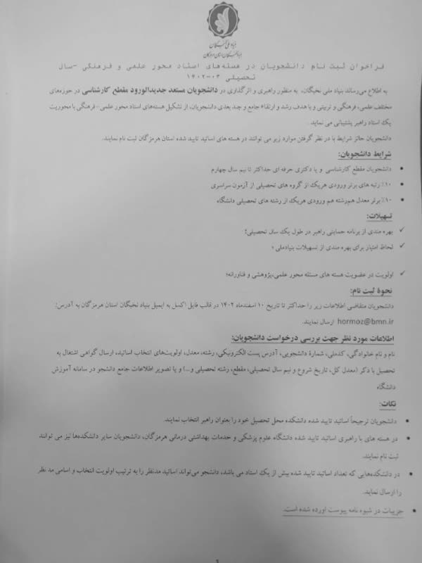 فراخوان ثبت نام دانشجویان در هسته های استاد محور علمی و فرهنگی