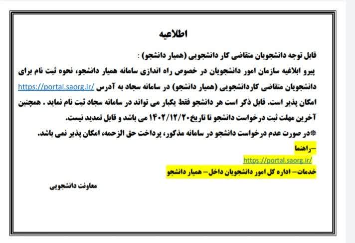 قابل توجه دانشجویان متقاضی کار دانشجویی