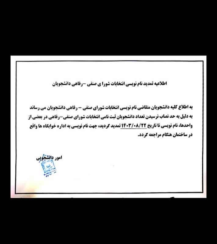 تمدید نام نویسی انتخابات شورای صنفی-رفاهی دانشجویان