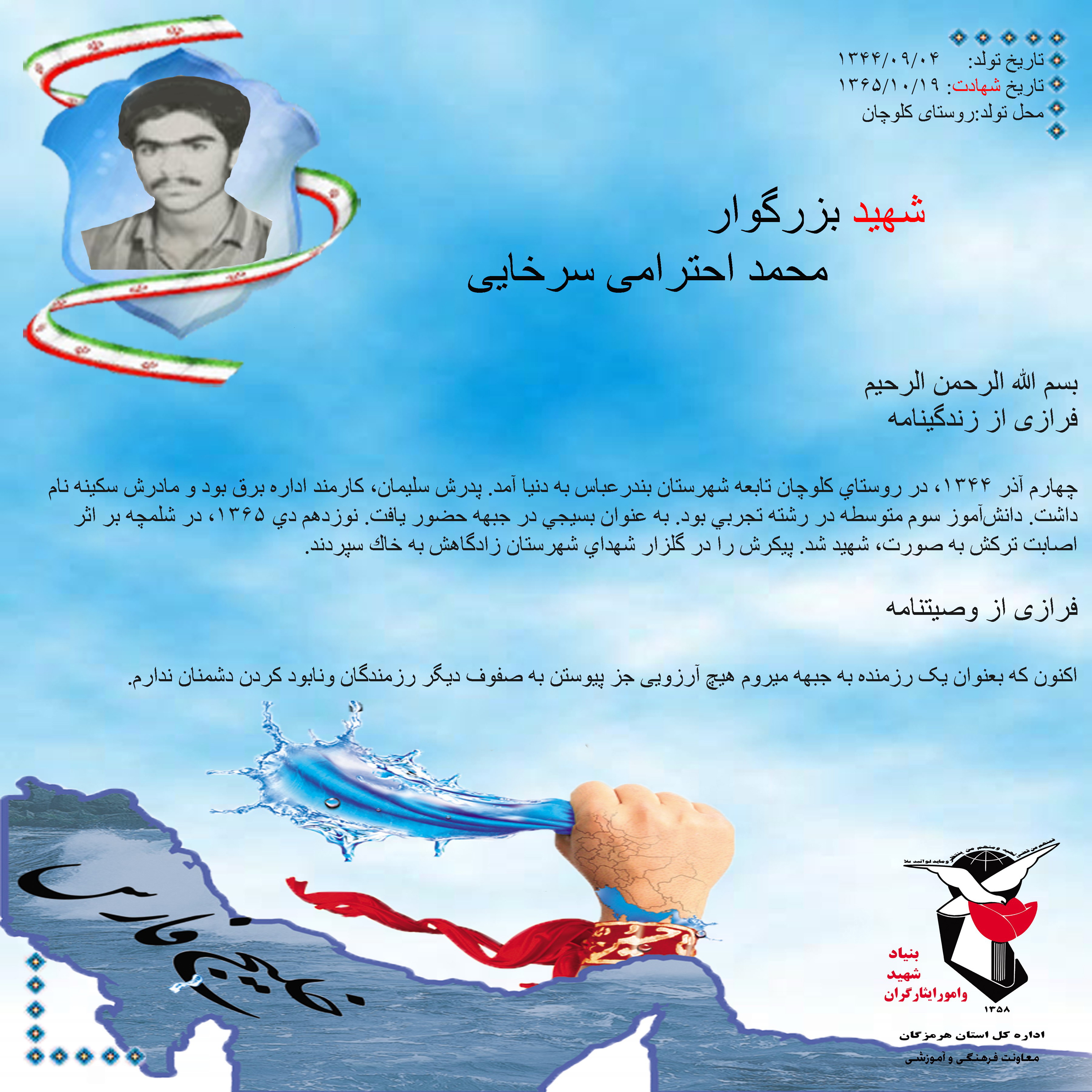 فرازی از زندگینامه و وصیتنامه شهید بزرگوار محمد احترامی سرخایی