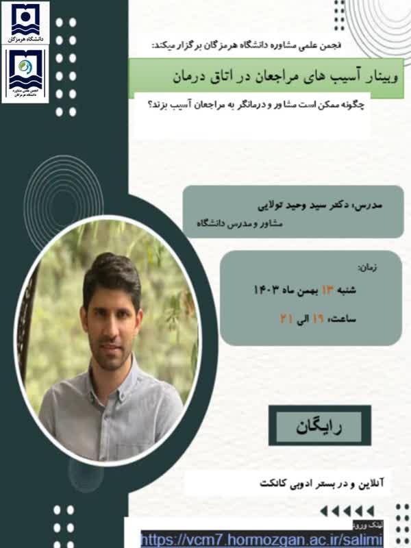 وبینار آسیب های مراجعان در اتاق درمان