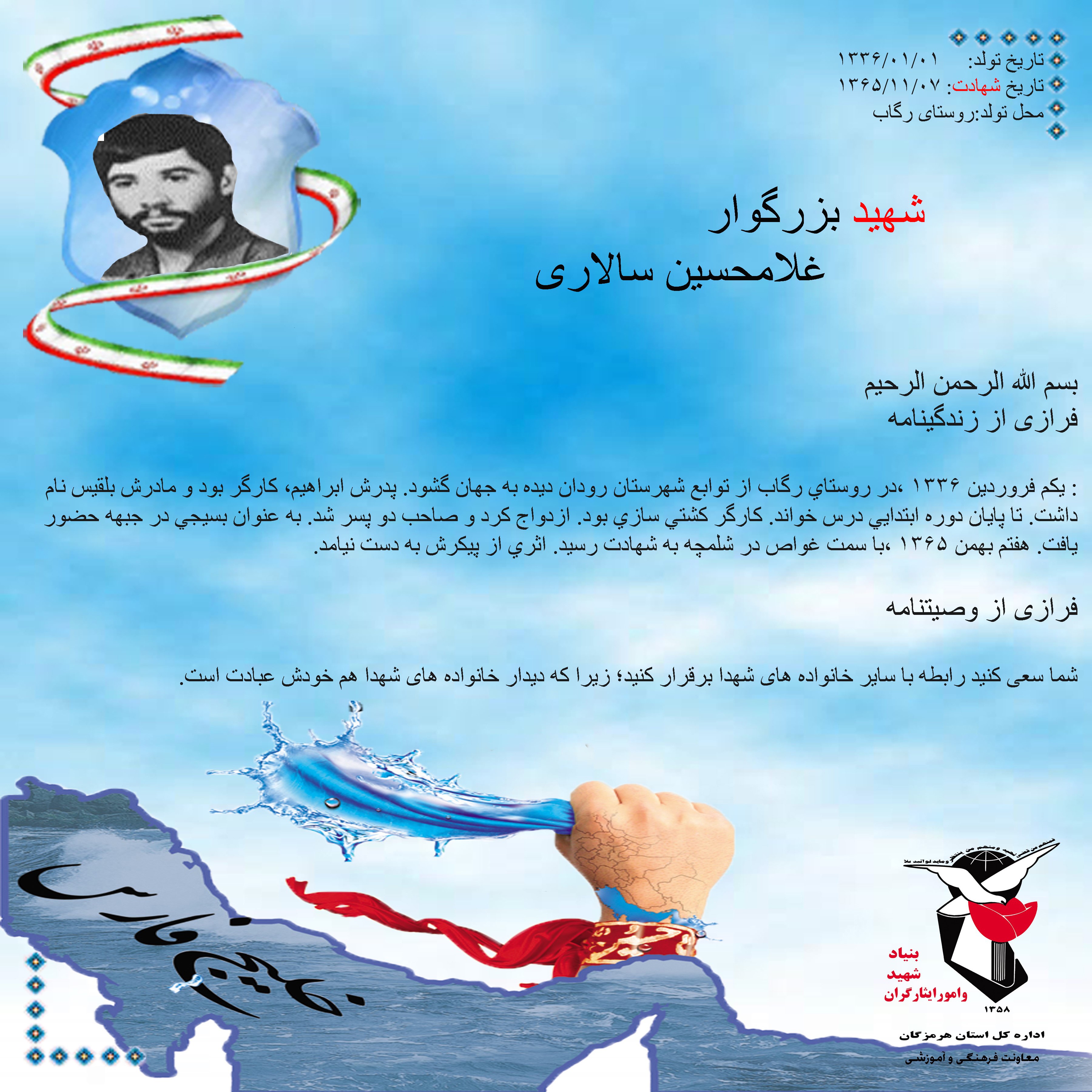 فرازی از زندگینامه و وصیتنامه شهید بزرگوار غلامحسین سالاری