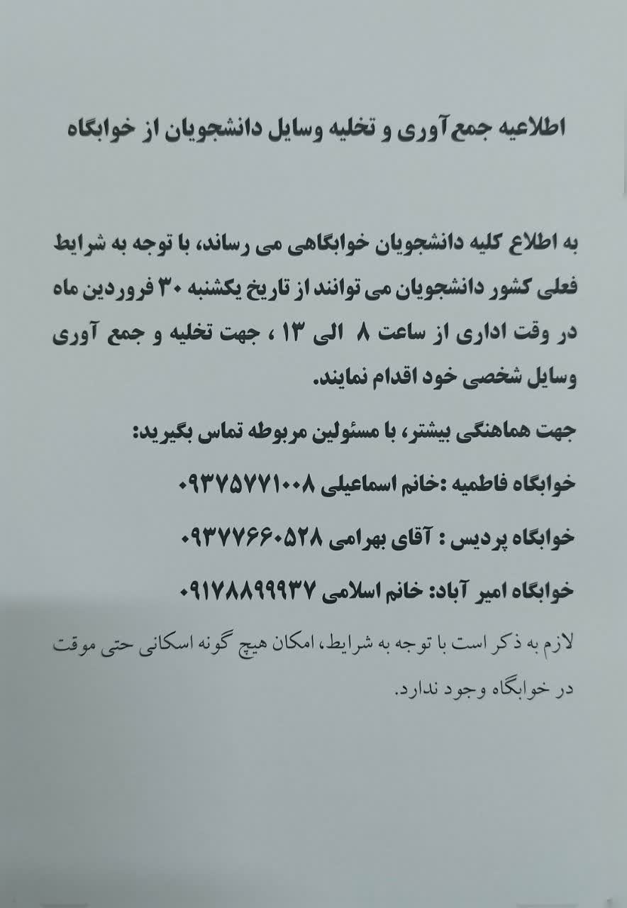 - اطلاعیه های ثبت نام خوابگاه، تغذیه و صندوق رفاه دانشجویان ورودی جدید