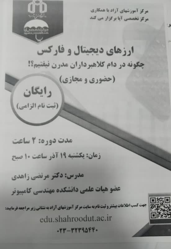 مرکز آموزشهای آزاد با همکاری مرکز تخصصی آپا برگزار می کند