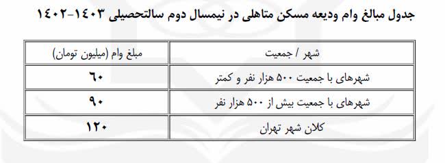 برنامه زمان‌بندی اعطای وام شهریه و مبالغ جدید وام ودیعه مسکن متاهلی در نیمسال دوم سال تحصیلی 1403 -1402