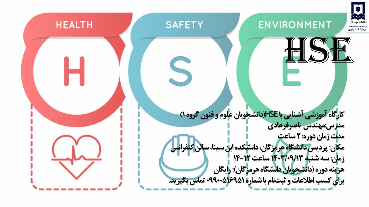 آزمایشگاه مرکزی در نظر دارد در راستای توانمندسازی دانشجویان، دوره‌های  ایمنی متناسب با حوزه تخصصی ایشان با تاکید بر دانشجویان جدیدالورود برگزار کند. به همین منظور اولین دوره مختص دانشجویان علوم و فنون با تاکید بر دانشجویان گروه شیلات در تاریخ 1403/09/13 روز سه شنبه ساعت 12-14 در سالن کنفرانس دانشکده ابن سینا برگزار می گردد.