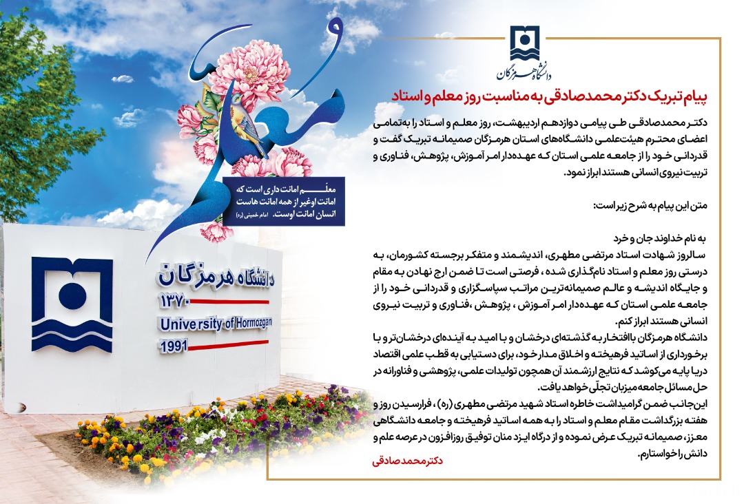 تبریک جناب آقای دکتر محمد صادقی به مناسبت روز استاد و معلم