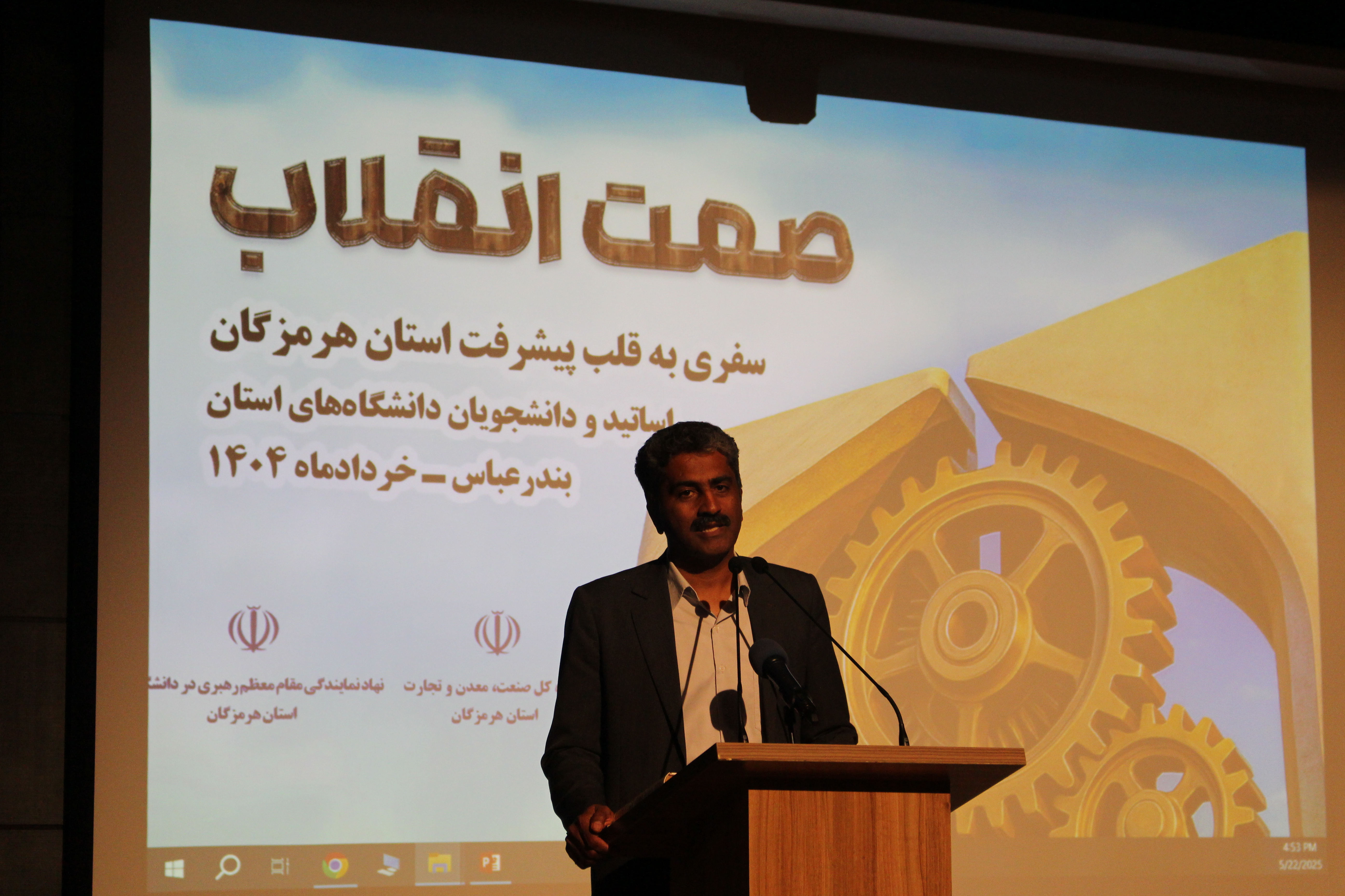 این برنامه صبح روز پنجشنبه یکم خردادماه، با نشست توجیهی در مسجد امام رضا (ع) پردیس دانشگاه علوم پزشکی هرمزگان آغاز شد. در این مراسم، حجت‌الاسلام والمسلمین تقوی، رئیس نهاد نمایندگی مقام معظم رهبری در دانشگاههای استان به تشریح اهداف بازدید و اهمیت آشنایی دانشگاهیان با ظرفیتهای صنعتی استان پرداخت.