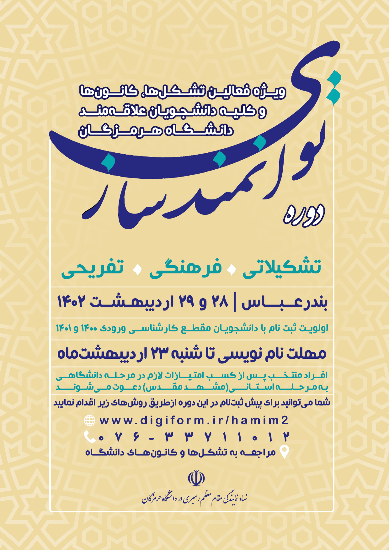 + ویژه فعالین تشکلها، کانونها و کلیه دانشجویان علاقهمند ورودی ۱۴۰۰ و ۱۴۰۱