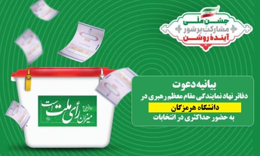 امروز شاهد عرصه دیگری از انتخاب ملت هستیم. جوانان بدانند که انتخابات پرشور از ارکان حکمرانی درست و مایه پیشرفت و سربلندی کشور عزیزمان است. حضور احاد مردم در پای صندوق رأی نشــانه ی حضور مّلّت در صحنه های مهّمّ اداره ی کشور است که روزی آرزوی آن را داشتند. دانشجویان عزیز حضور حداکثری در صحنه ی انتخابات باعث افزایش قدرت ملّی اســت و این پشتوانه ی امنّیّت مّلّی ما است. دانشجویان و نخبگان دلسوز کشور، رأی ندادِن برخی و قهر با انتخابات مشکلی از کشــور را حل نمیکند، بلکه باعث ضرر بیشتر می شود؛ چون اگر هر کدام از ما رأی ندهیم، یک نفــر دیگر رأی میدهد به کســی که شاید صلاحیت لازم برای تصدی امر قانون گذاری را ندارد و ممکن است انتخاب بشود؛پس بدانید رای شما ممکن است جلوی افراد ناکارآمد را بگیرید.