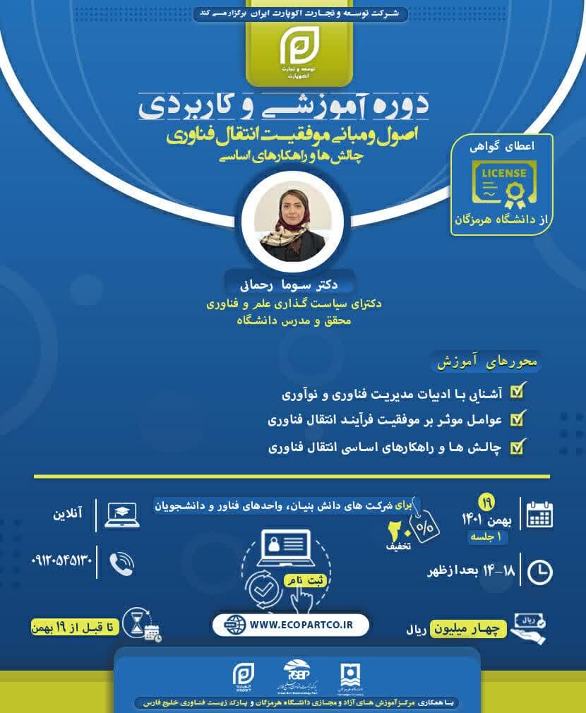 دوره آموزشی و کاربردی اصول و مبانی موفقیت انتقال فناوری