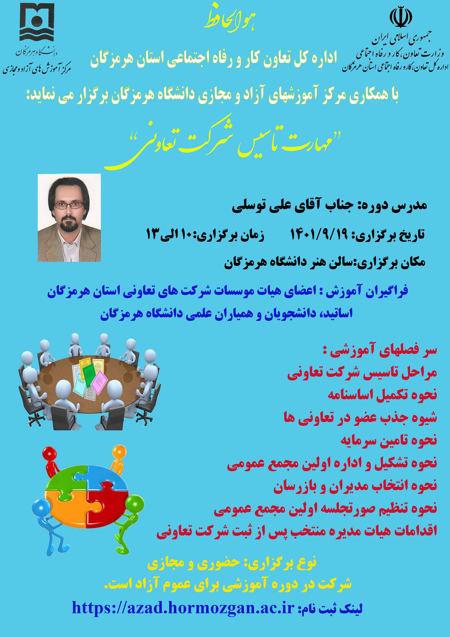 دوره آموزشی "مهارت تاسیس شرکت تعاونی"