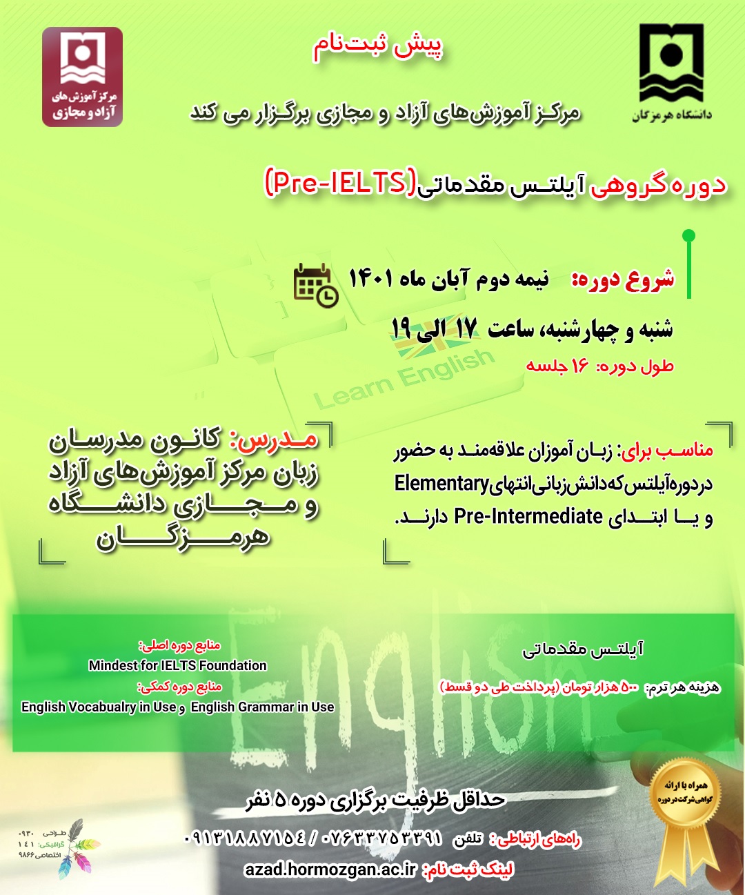برگزاری دوره آیلتس مقدماتی (Pre IELTS)