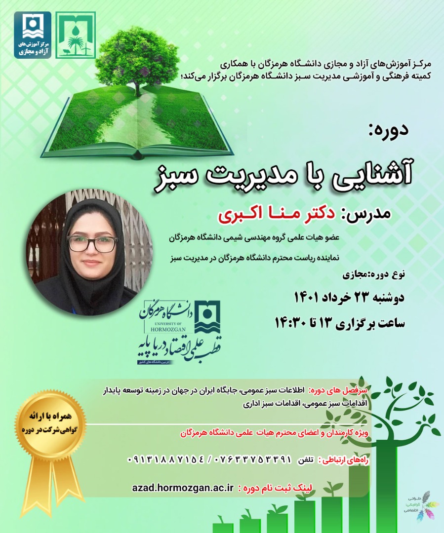 برگزاری دوره یک روزه آشنایی با مدیریت سبز (ویژه کارمندان و اعضای هیأت علمی دانشگاه هرمزگان)