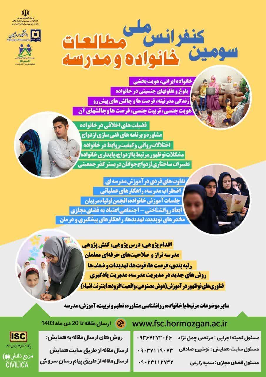 سومین کنفرانس ملی مطالعات خانواده و مدرسه