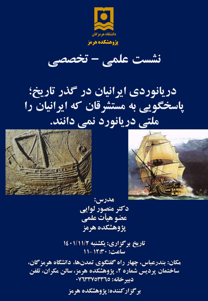 برگزاری نشست علمی - تخصصی (دریانوردی ایرانیان در گذر تاریخ؛ پاسخگویی به مستشرقان که ایرانیان را ملتی دریانورد نمی‌دانند.)