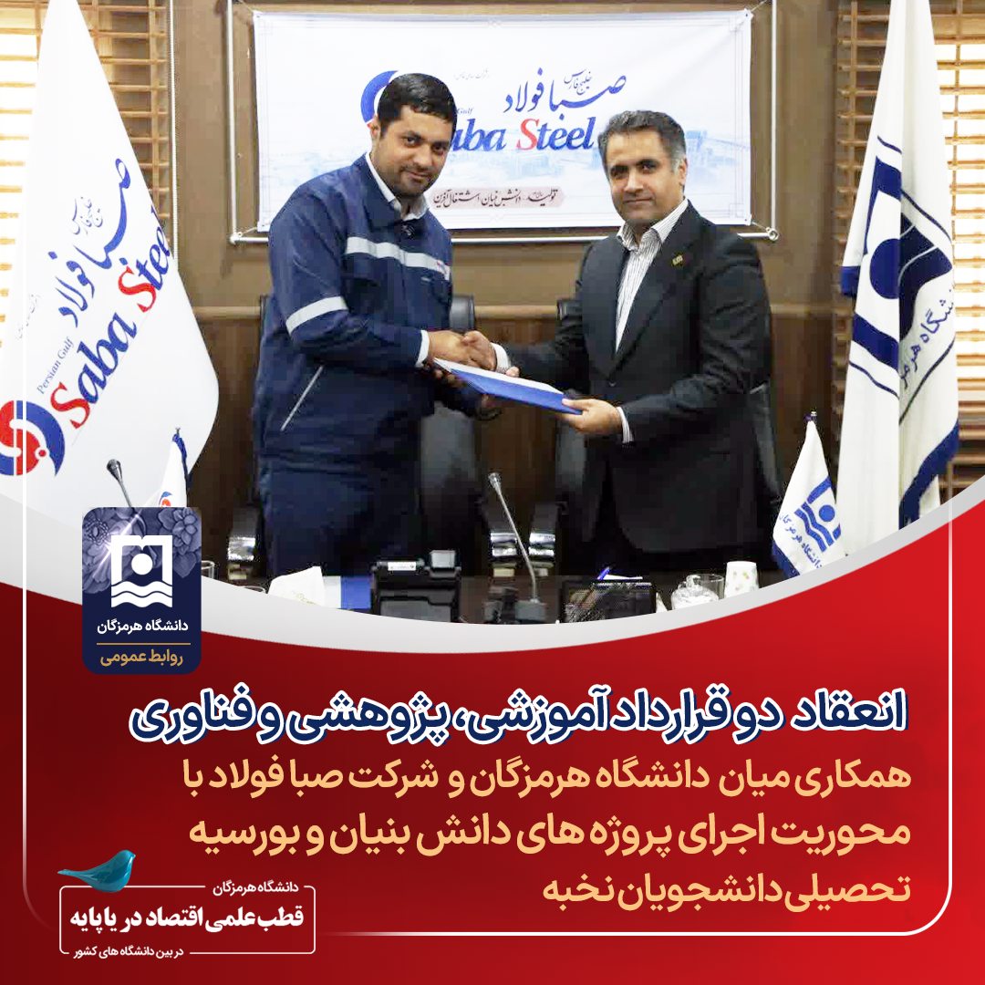انعقاد قرارداد بورسیه مهارت افزایی و اشتغال دانشجویان میان شرکت صبا فولاد و دانشگاه هرمزگان به همت مدیریت کارآفرینی و ارتباط با جامعه دانشگاه هرمزگان