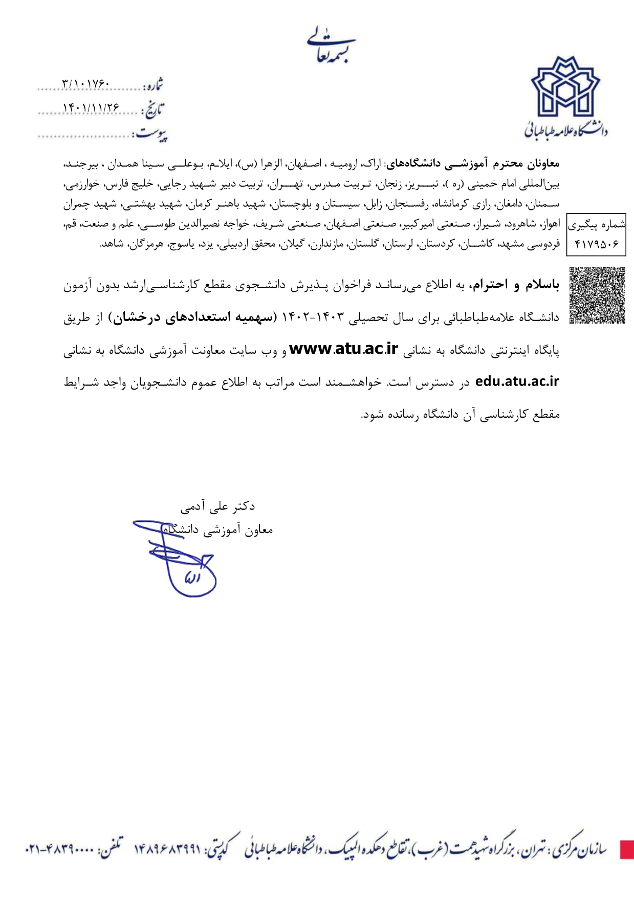 فراخوان استعداد های درخشان دانشگاه علامه طباطبایی