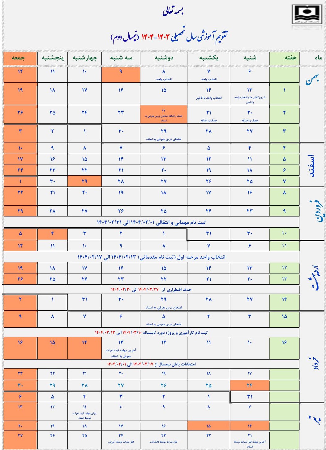آخرین ویرایش تقویم آموزشی