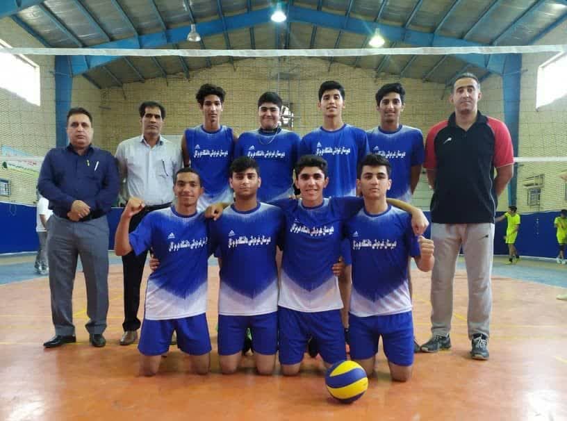 تیم والیبال دبیرستان دانشگاه هرمزگان برسکوی قهرمانی ایستاد