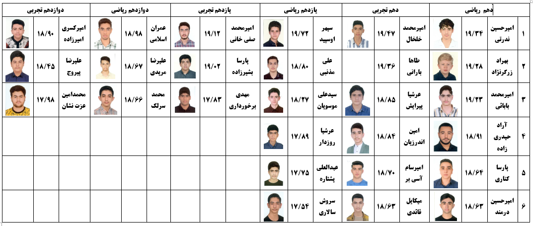 دانش آموزان برتر درسی نوبت اول پایه های دهم تا دوازدهم