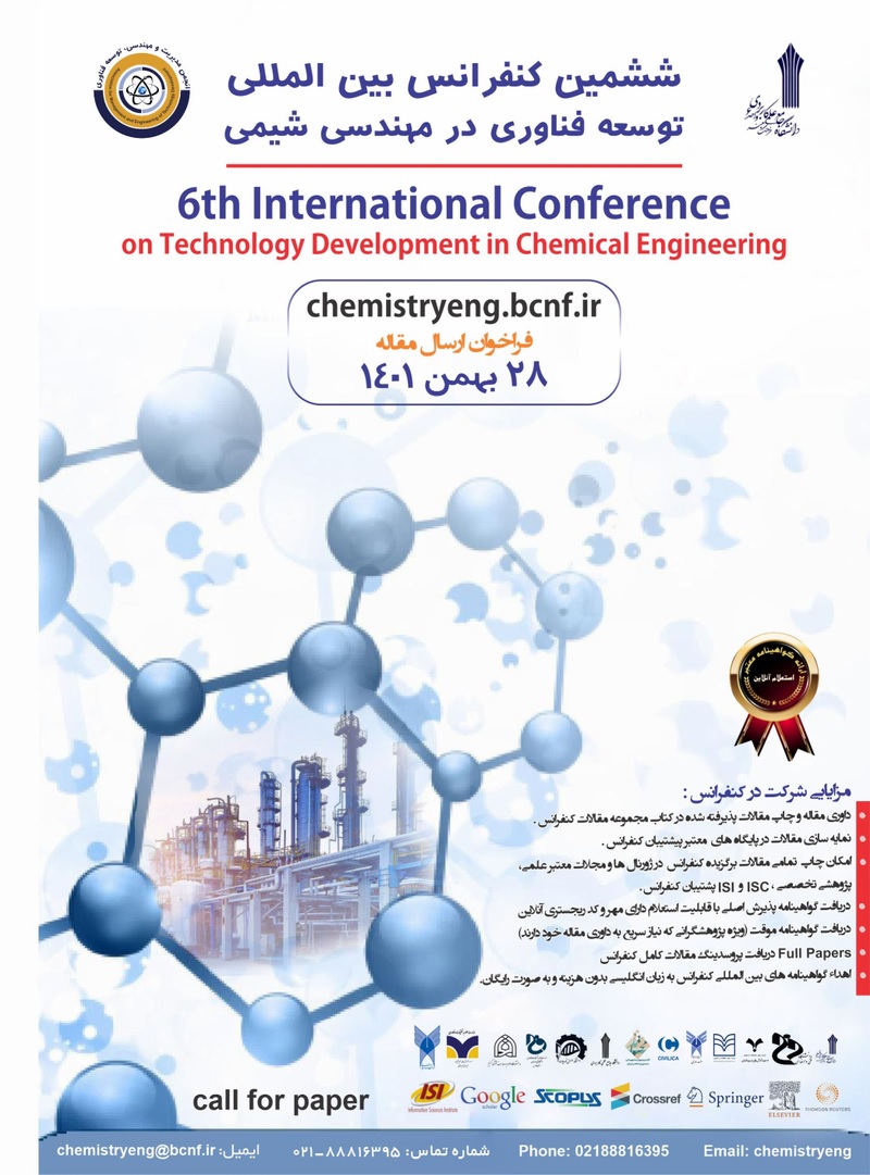 ششمین کنفرانس بین المللی توسعه فناوری در مهندسی شیمی، بهمن 1401