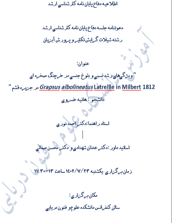 اطلاعیه دفاع پایان نامه کارشناسی ارشد
