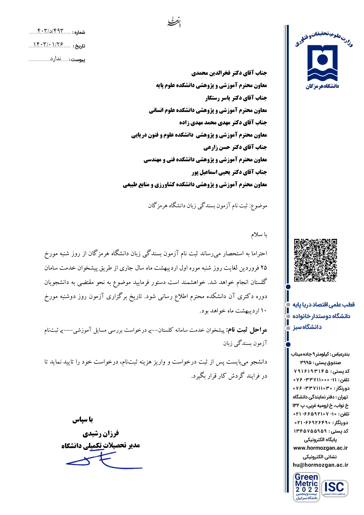 ثبت نام آزمون بسندگی زبان دانشگاه هرمزگان