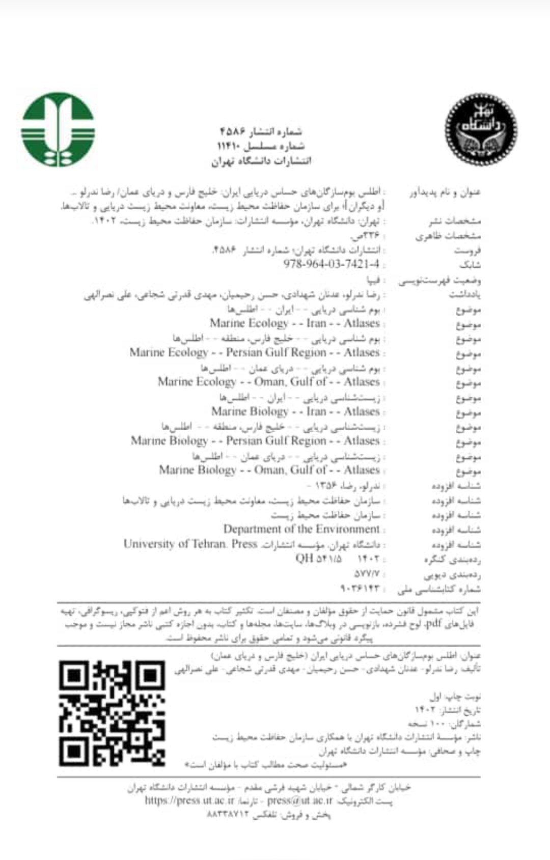 چاپ اطلس بوم سازگان های حساس دریایی ایران ( خلیج فارس و دریای عمان)