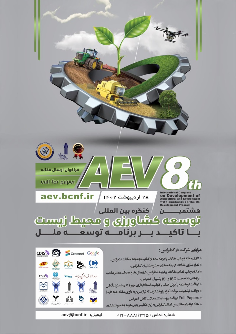 هشتمین کنگره بین المللی توسعه کشاورزی و محیط زیست با تاکید بر برنامه توسعه ملل در تاریخ ۲۸ اردیبهشت ۱۴۰۲ توسط ،دبیرخانه دائمی کنفرانس در شهر تهران برگزار خواهد شد.با توجه به اینکه این همایش به صورت رسمی برگزار می گردد، کلیه مقالات این کنفرانس در پایگاه سیویلیکا و نیز کنسرسیوم محتوای ملی نمایه خواهد شد و شما می توانید با اطمینان کامل، مقالات خود را در این همایش ارائه نموده و از امتیازات علمی ارائه مقاله کنفرانس با دریافت گواهی کنفرانس استفاده نمایید.