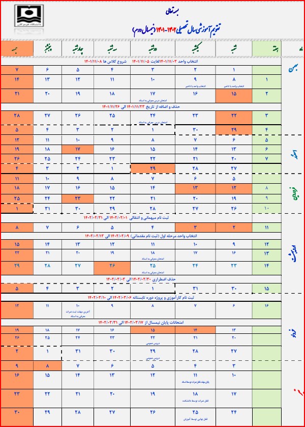 تقویم آموزشی نیمسال تحصیلی 1401-1402