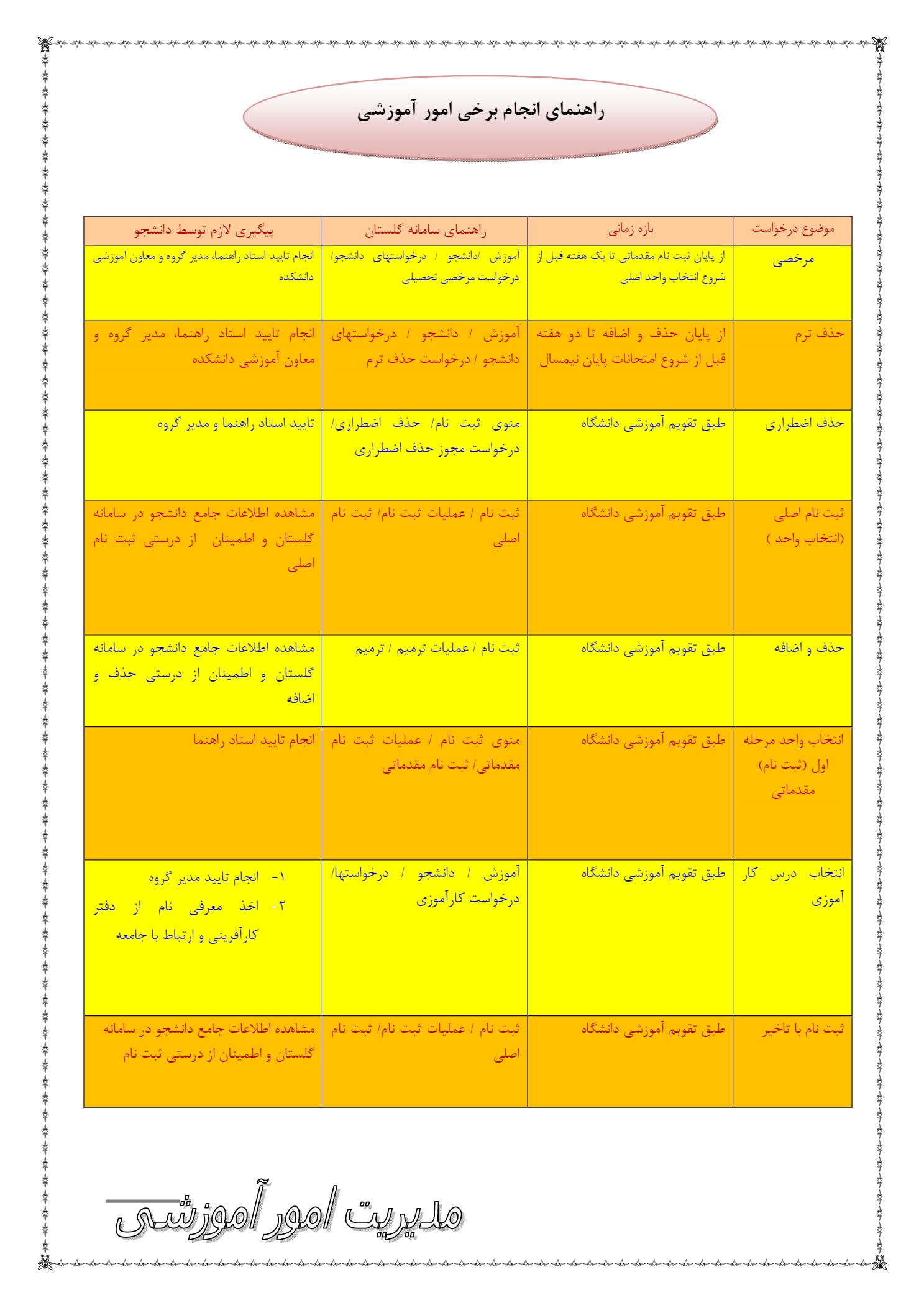 راهنمای امور آموزشی دانشجویان