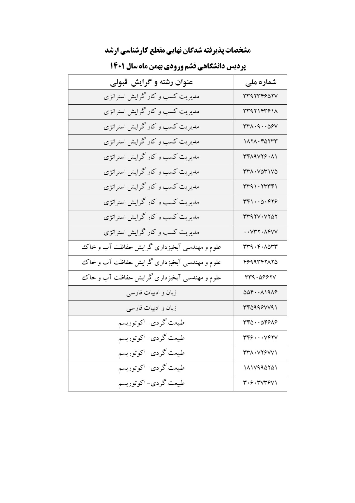 پذیرفته شدگان نهایی: