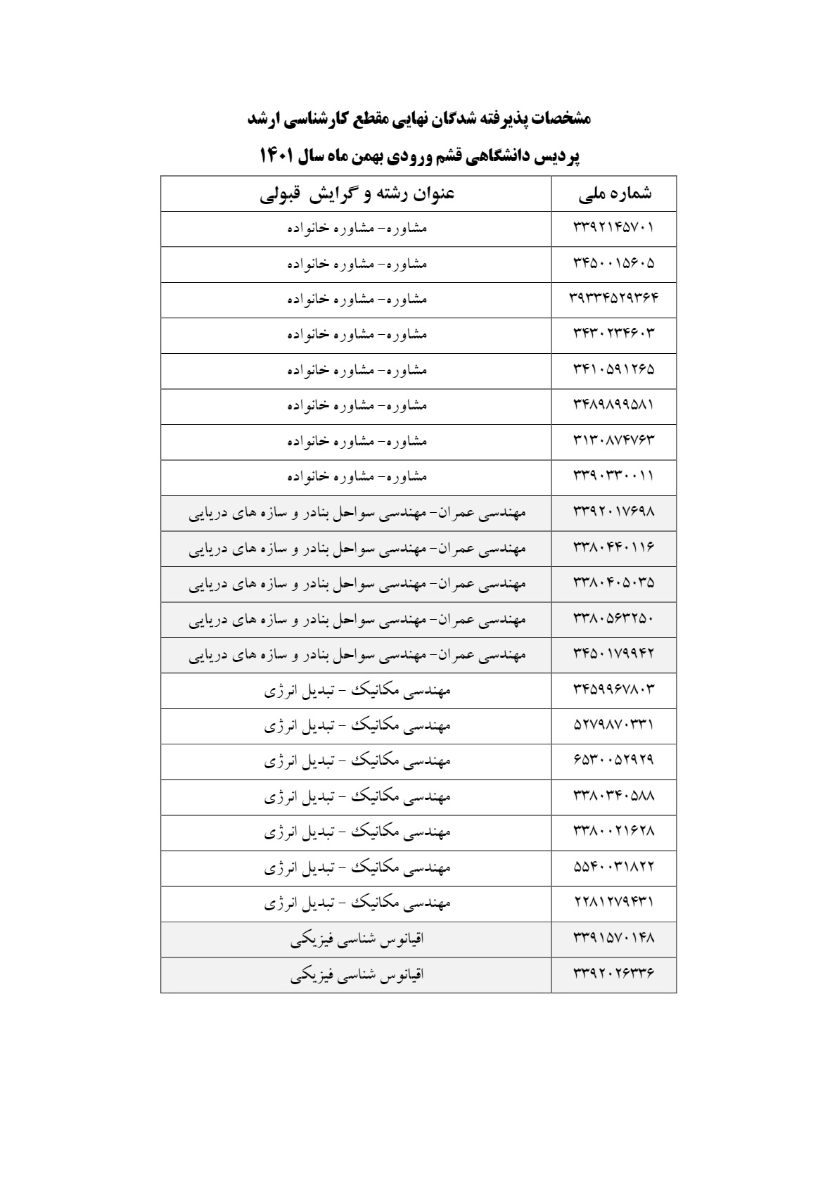 اطلاعیه ثبت نام از پذیرفته شدگان مقطع کارشناسی ارشد پردیس دانشگاهی قشم