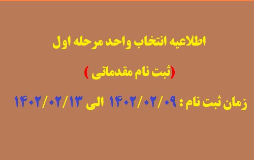 اطلاعیه انتخاب واحد مرحله اول (ثبت نام مقدماتی )