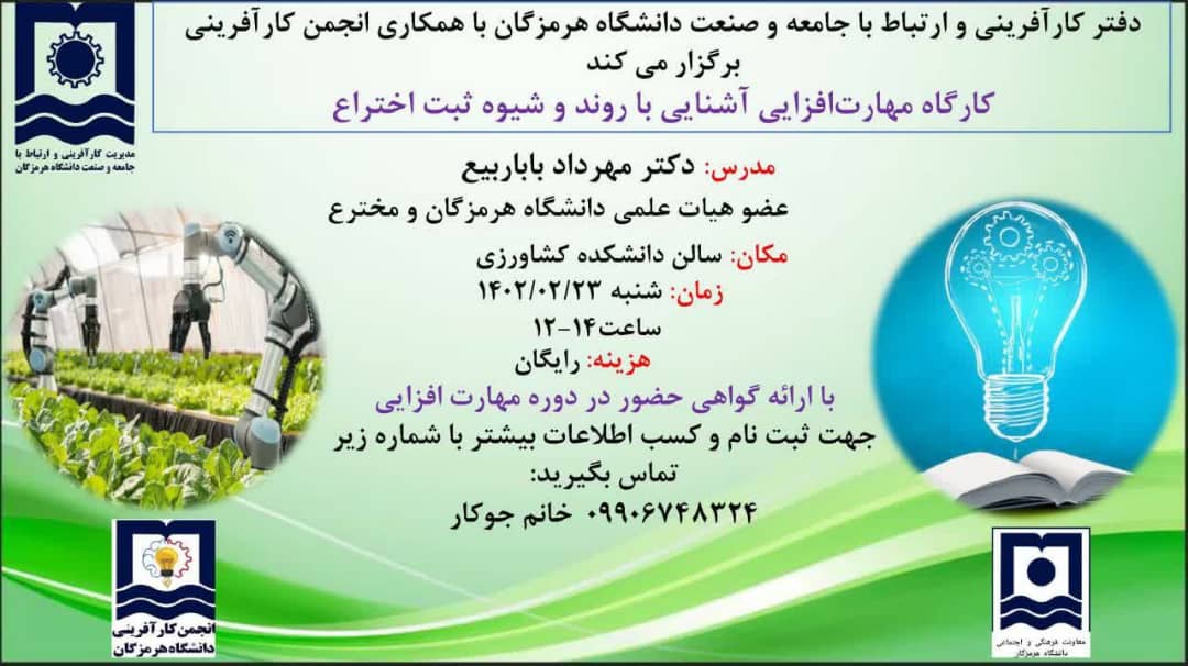 کارگاه مهارت افزایی آشنایی با روند و شیوه ثبت اختراع