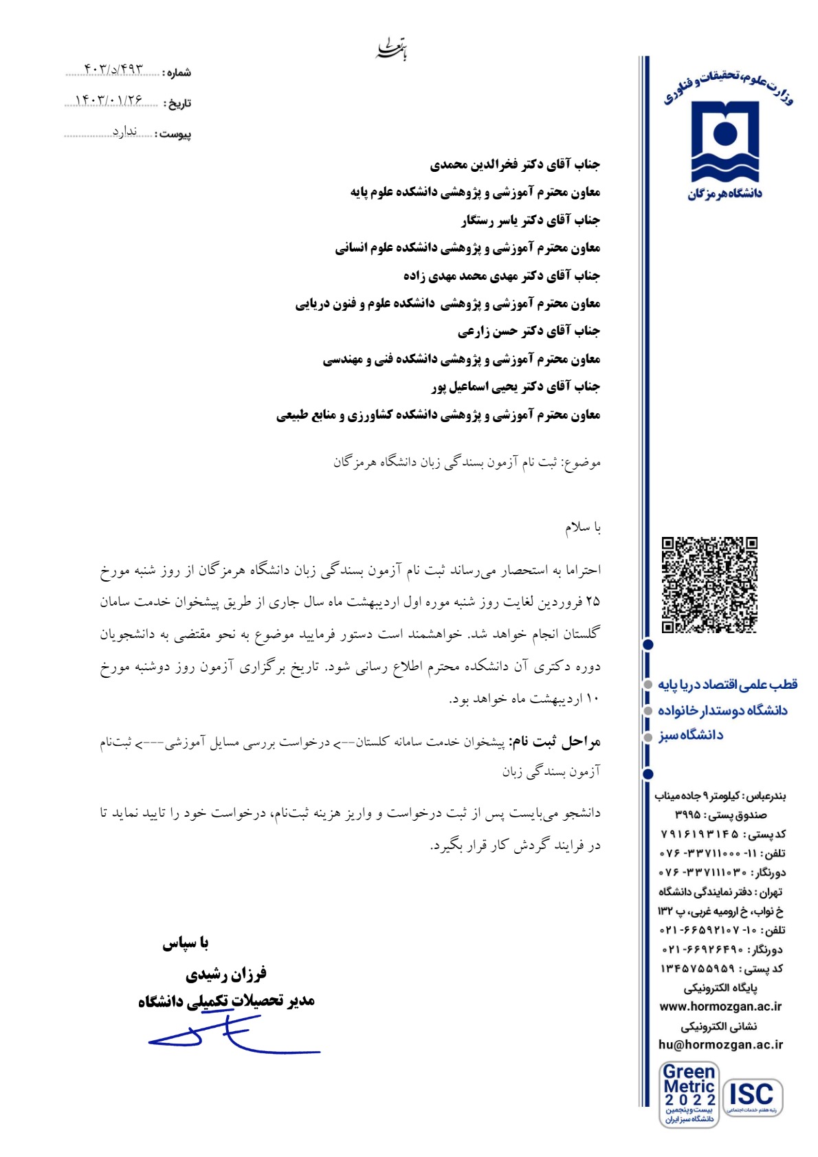 آزمون بسندگی زبان دانشگاه هرمزگان
